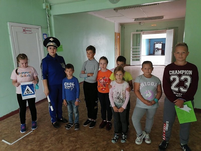 Инспектор провела с ребятами беседу о важности соблюдения правил дорожного движения, а также ношения световозвращающих значков, которые воспитанники летней досуговой площадки получили в качестве подарка.