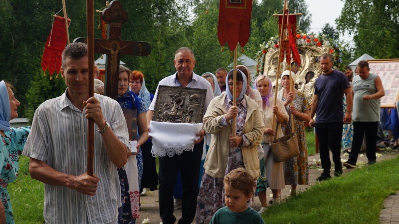 Престольный праздник отметили прихожане Георгиевского храма рабочего посёлка имени Цюрупы. В честь Тихвинской иконы Божией Матери 9 июля здесь прошёл крестный ход, в котором приняли участие жители и гости посёлка.