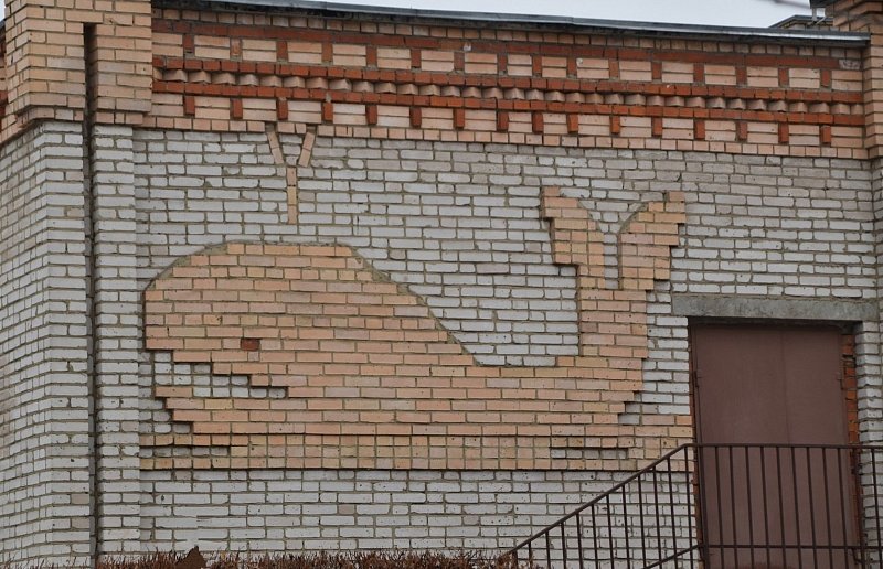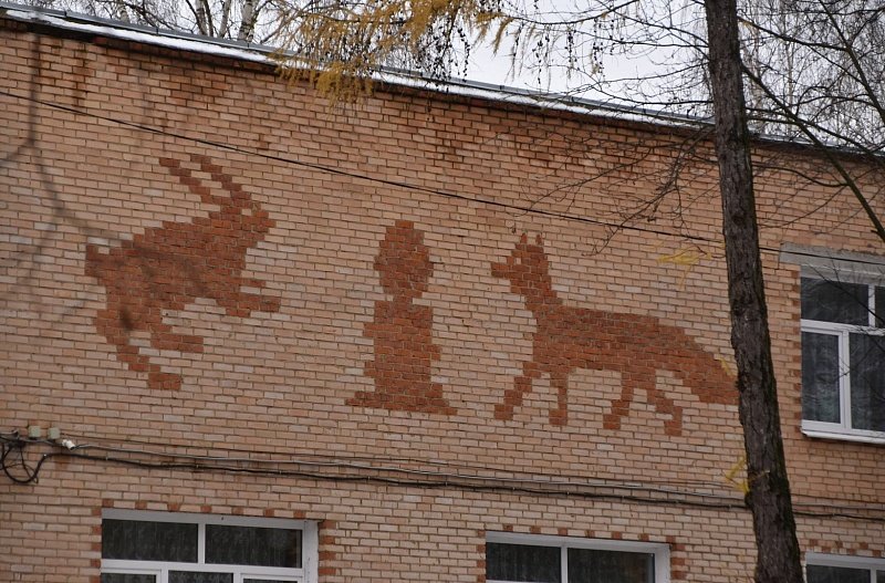 В нашем городском округе можно найти жилые дома и учреждения с изображением рабочих и техники, представителей флоры и фауны, героев сказок и даже олимпийского медвежонка, выполненные из облицовочной плитки или кирпича.