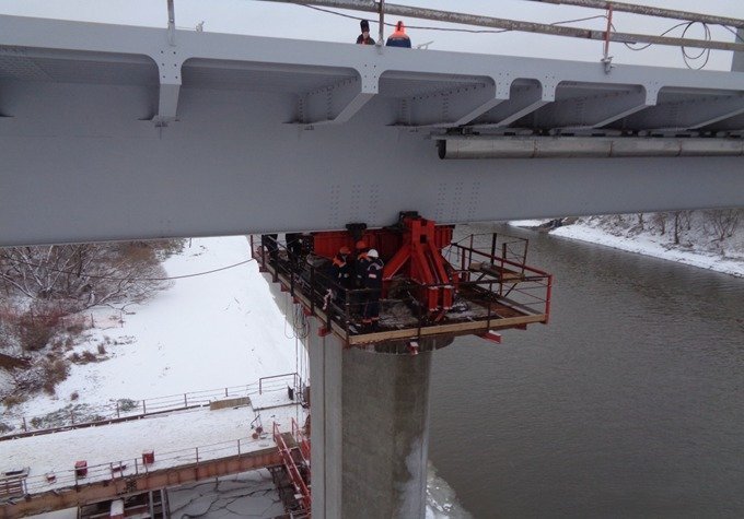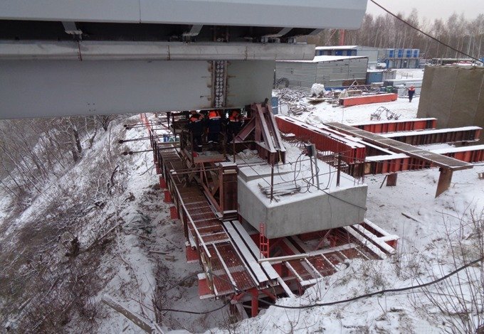 В настоящий момент на строительной площадке задействовано 80 человек и 20 единиц специализированной техники. Продолжается устройство ливневой канализации, ведется демонтаж стапеля, толкающего устройства и балансирных балок на опоре №2. Кроме этого, рабочие заняты армированием шкафной стенки опоры №1 и бетонированием свай БНС опоры №4.