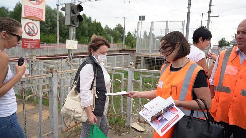 Министерство транспорта и дорожной инфраструктуры Московской области и Административно-пассажирская инспекция совместно с ОАО "РЖД", администрацией городского округа Воскресенск и волонтерам провели мероприятие, направленное на снижение количества случаев травматизма и смертности на ж/д транспорте Подмосковья на платформе "Виноградово" - Рязанского направления МЖД в черте городского округа Воскресенск.