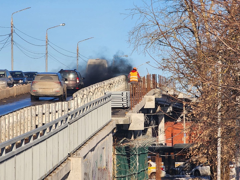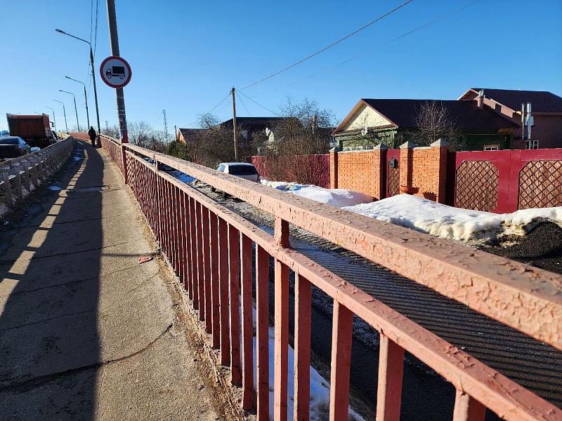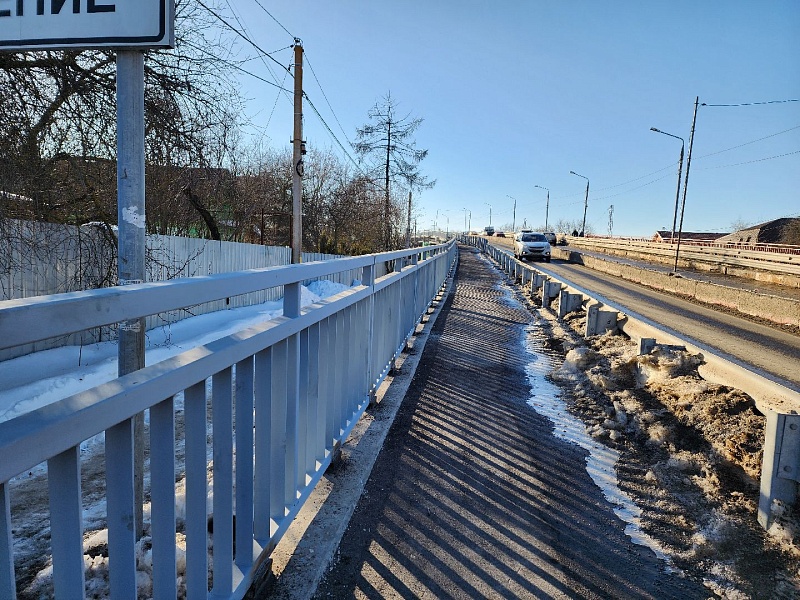 В Воскресенске продолжается капитальный ремонт путепровода. Сейчас на отремонтированной части моста завершают установку новых перил.