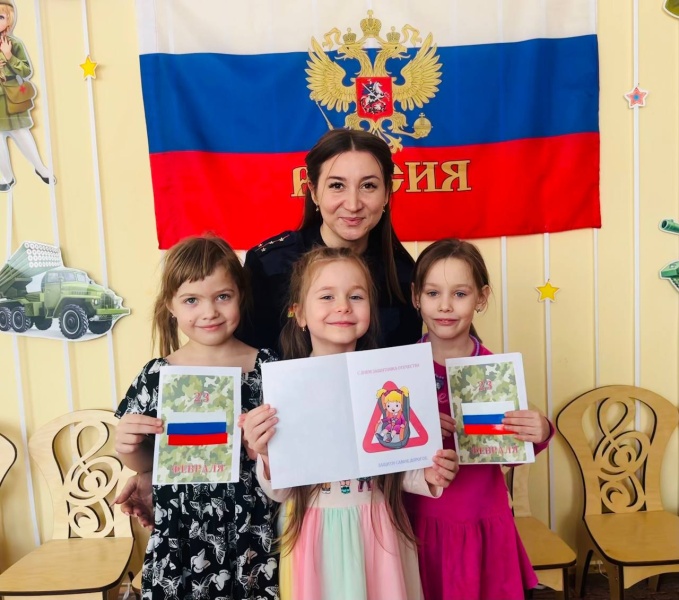 В канун праздничной даты - Дня защитника Отечества, вместе с инспектором и юидовцами, дети подготовили праздничную открытку для своих пап и дедушек.