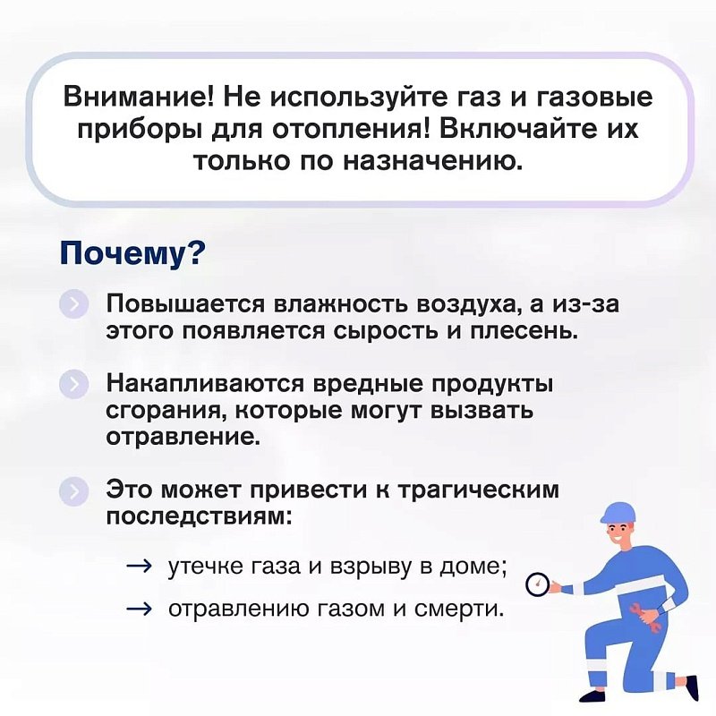 Уважаемые жители! Просим вас строго следовать правилам безопасности при пользовании бытовым газом, представленным в инфографике.