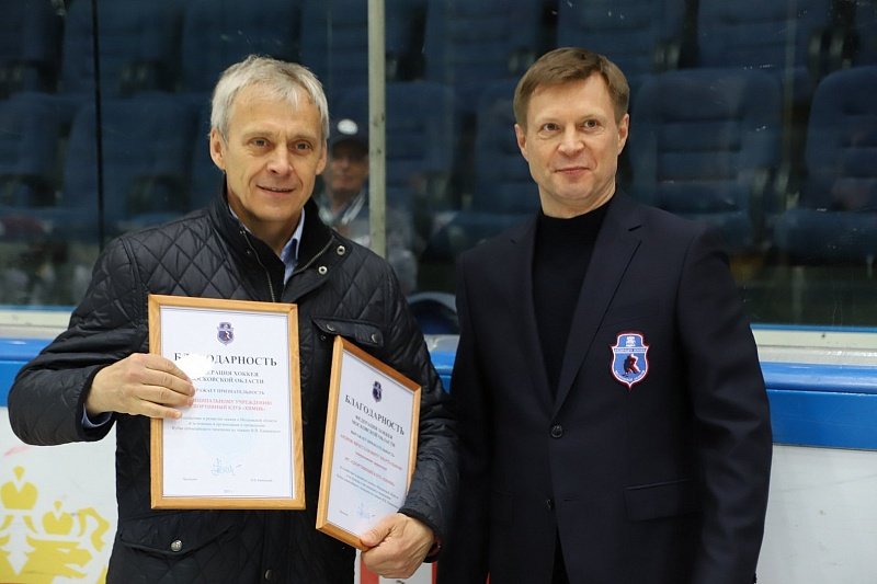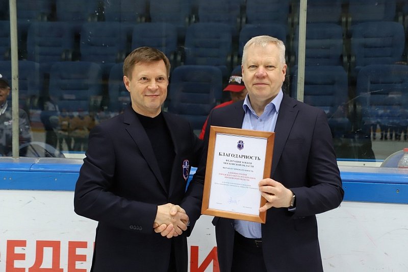 Генеральный директор СК «Химик» Андрей Квартальнов получил от Олега Козина благодарность Федерации хоккея Московской области с признательностью за содействие в развитии хоккея в Московской области.