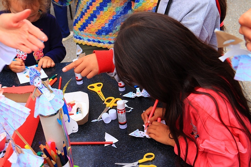 Гостей праздника также заинтересовали мастер-классы. Ведущие рассказали участникам мастер-класса о происхождении русской рубахи-косоворотки, её разновидностях и предложили вместе смастерить маленьких кукол в народных костюмах. Рубашки и сарафаны кукол дети украшали различными деталями и элементами, соответствующими стилю косоворотки: цветами, различными узорами и ромбами.
