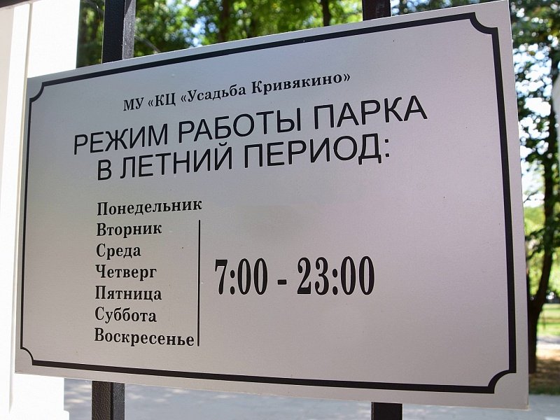 Хорошая информация для жителей и гостей нашего округа: время работы парка усадьбы Кривякино продлено. Его двери открыты с 7.00 до 23.00. Такое решение принято по желанию воскресенцев, которые лично обращались к главе городского округа Воскресенск Артуру Болотникову с этой просьбой.