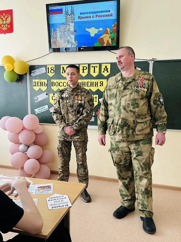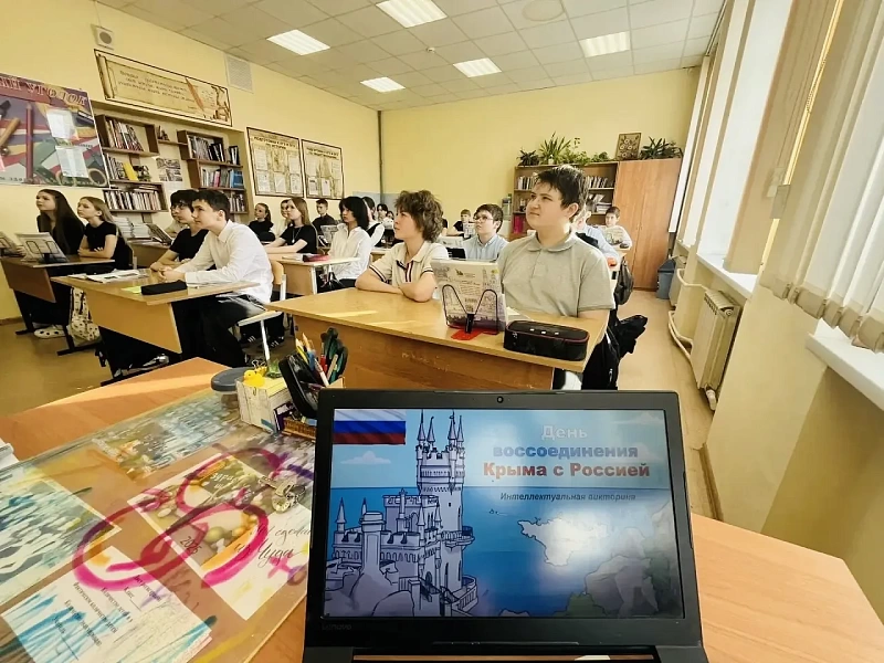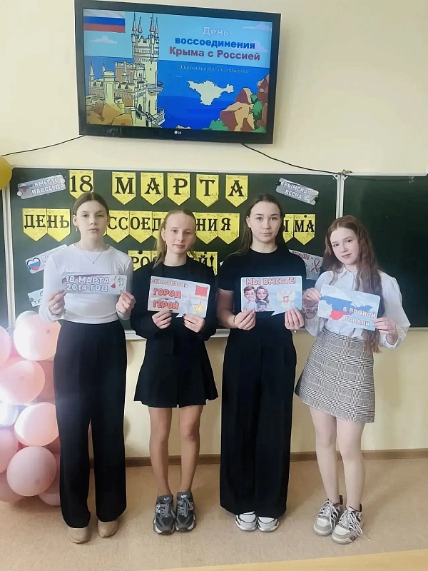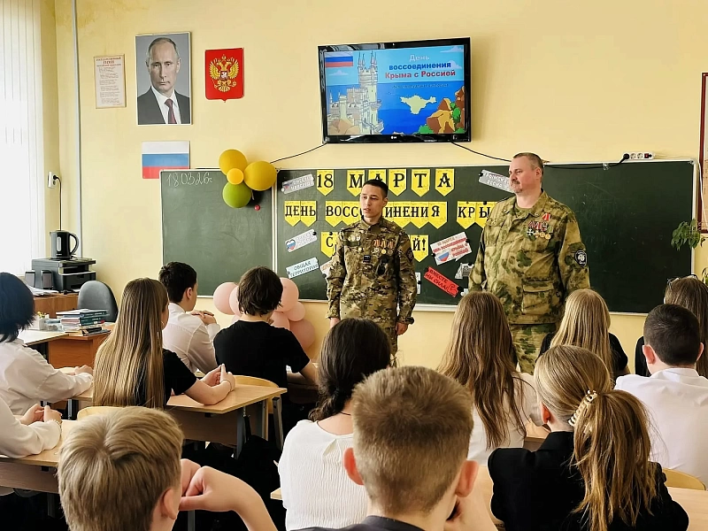 В школе имени Героя России лётчика – испытателя Сергея Рыбникова состоялся патриотический час «Крым – частица России». Учащиеся 7 Д класса отметили важнейшую дату новейшей истории — воссоединение Крыма с Россией.