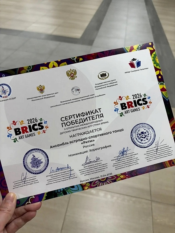 21 апреля ансамбль эстрадно-спортивного танца «Ритм» ДШИ «Элегия» под руководством Ирины Макеевой выступил на Гала-шоу победителей II Открытых международных детских Творческих игр стран БРИКС.