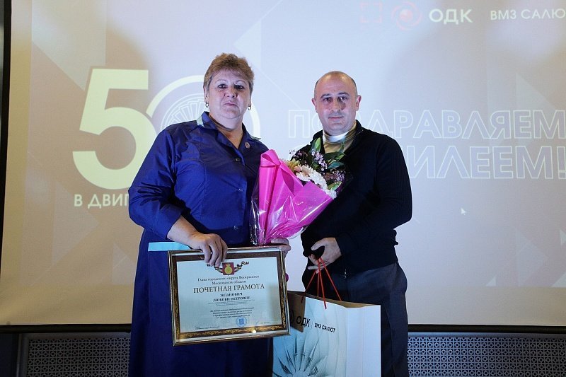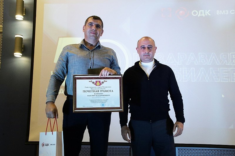 На торжестве, посвященном юбилею завода, заместитель главы городского округа Воскресенск Самвел Гарибян поздравил руководство, сотрудников предприятия с праздником и вручил заслуженные награды.