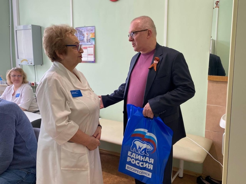 Руководитель депутатского объединения «Единая Россия» в Совете депутатов Сергей Слепов поздравил ветерана труда Аллу Алексеевну Зубатову на рабочем месте. Она врач-терапевт и работает с 1977 года на территории Воскресенской областной больницы.