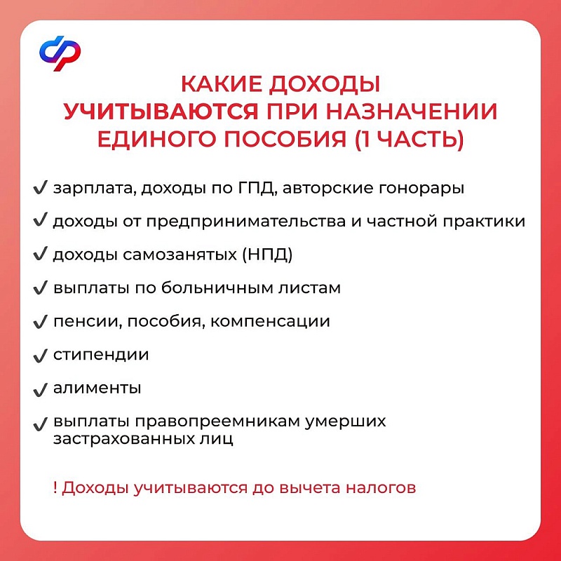 Подробный перечень доходов, которые учитываются и не учитываются, смотрите в карточках