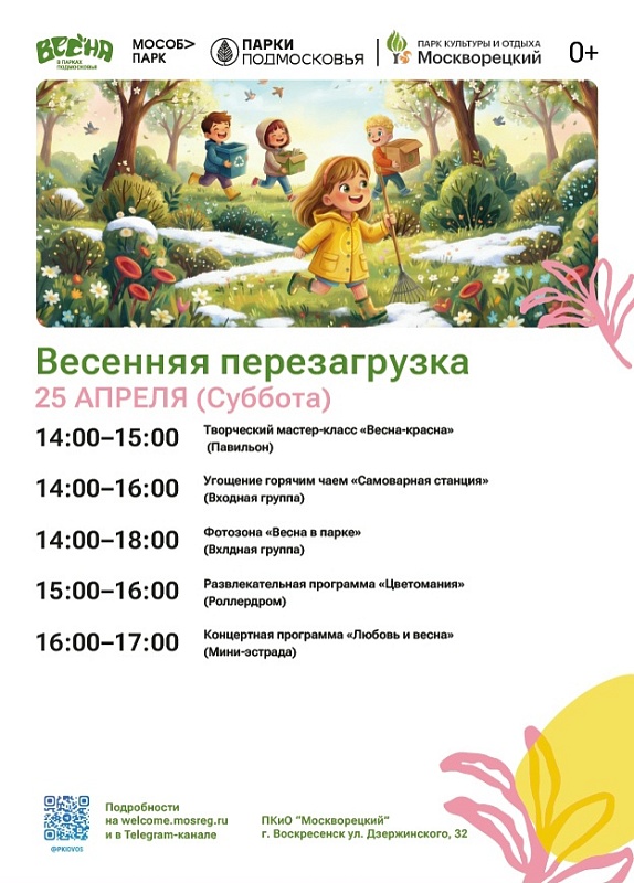 25 апреля в парках усадьбы Кривякино и «Москворецкий» состоится областное мероприятие «Весенняя перезагрузка», которое обещает быть не только интересным, но и полезным.