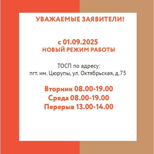 Информируем о новом режиме работы ТОСП МФЦ, расположенного по адресу: г.о. Воскресенск, рабочий посёлок имени Цюрупы, ул. Октябрьская, д. №75.