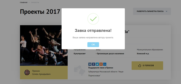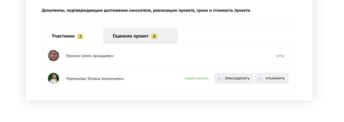 После подтверждения ваша заявка на присоединение будет направлена участнику, на которого зарегистрирован данный проект.