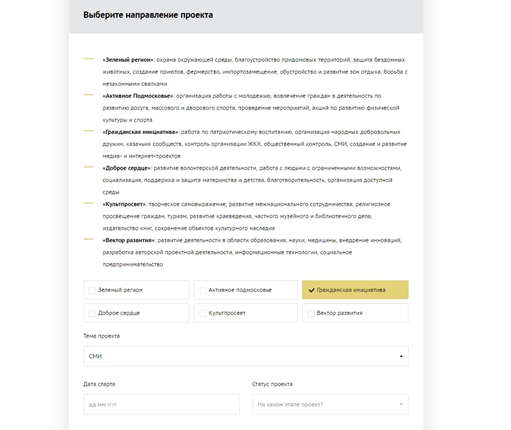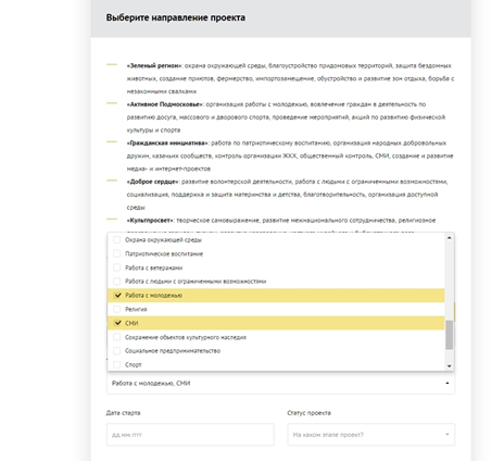 Внимание: не допускается участие в качестве соискателя и члена инициативной группы другого проекта одновременно!
