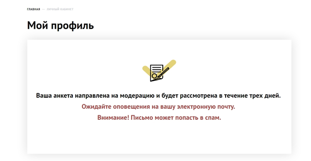 Ваша анкета будет отправлен на модерацию и будет рассмотрена в течение 3х дней.