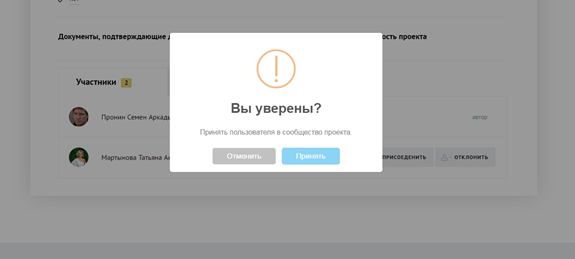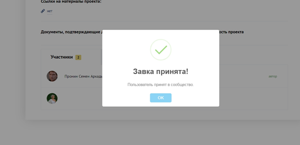 После подтверждения Вы будете автоматически присоединены к проекту.