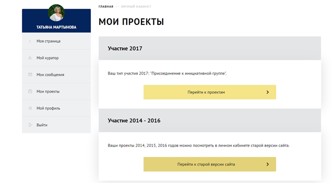 После авторизации Вы увидите свой личный профиль. Выберите вкладку «Мои проекты».