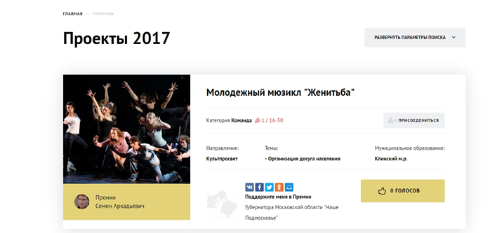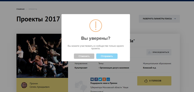 4.Далее выбираете проект, который реализуете в качестве члена инициативной группы. Нажимаете кнопку «Присоединиться»